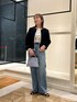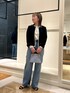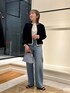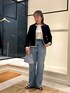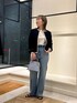 セレモニーで使ったジャケット、それだけだと勿体無いし普段も使いたい………という方にオススメのコーデ! 配色パイピングが特徴のノーカラージャケットは、シンプルなデザインなのでオンオフ問わず合わせやすいのがポイント ロンT+デニムのカジュアルコーデにサラッと羽織るだけで、大人のお出かけコーデに変身 裾内側に深めのスリットが入ったフレアデニムは、程よいスッキリ感&脚長効果が◎ 1枚あるとオシャレ度をアップしてくれるアイテムです ※他のRMデニムシリーズと違い、綿100%でポリウレタンが入っていないのでストレッチ感は少し弱め 普段MサイズなのでMで履いたら結構ピチピチでした [着用サイズ] ジャケット:40 Tシャツ:F デニム:M