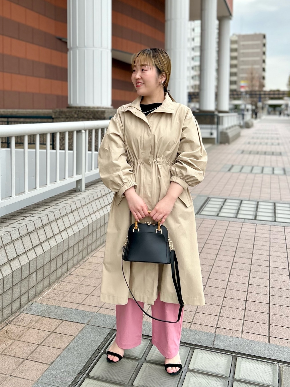 やっと春らしい気温になり、店頭でも大人気なコートはこちら! 軽やかな雰囲気のこのコート、フードはファスナーで簡単に取り外し可能◎フードを取り外してスタンドネックとして着用すると今年らしいハンサムな着こなしに 袖口やウエストにもアジャスター付きでコーデに合わせてアレンジしやすい仕様になっています アジャスターをしっかり絞れば細見え効果も◎ 袖や肩周りはゆったりめなので、スッキリ短めに着たい方は36サイズでも良さそうです 程よいハリ感のある素材なので、中はシンプルにリブニット+カラーチノで合わせて大人カジュアルにしてみました [着用サイズ] コート:38 ニット:38 パンツ:38