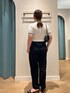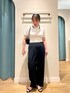 ライン入りのポロ衿とケーブル編みがトラッドで可愛いサマーニットは、ゴールドボタンが上品で1枚で決まる楽チンアイテム スッキリだけど身体のラインを拾いすぎず適度なゆったり感で安心なサイズ感です ホワイトは少し透け感があるのでインナーはベージュ系がオススメ◎ ウエストゴムで楽な着心地のワイドパンツは、ウォッシャブル&シワに強くデイリー使いにピッタリ! とろみ素材でストンと落ちるシルエットがスッキリ見えです ウエストゴムで少しゆったりなので普段の1つ下のサイズがオススメです [着用サイズ] ニット:38 パンツ:36