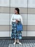 ブルーのぼかし柄が目を惹くフレアSKは、タックとギャザーが入っているので程よくフワッと広がって腰回りをカバーしてくれる1枚 ウエスト後ろはゴム&シワに強い素材なのでデイリー使いにも◎ 毎年人気の定番エタニティニットはアンサンブル着用もオススメ プルオーバーはベーシックなクルーネックでどんな形のアイテムとも相性抜群 カーディガンは羽織だけではなくボタンを閉めて1枚で着てもオシャレです 薄手なのでインナーはベージュ系がオススメです 【着用サイズ】 カーディガン:38 プルオーバー:38 スカート:38