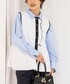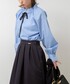 胸元のフリルが華やかなペプラムベストは、ノーリーズの新定番アイテム 片畔編みで程よい肉眼&ハリ感で身体のラインを綺麗に見せてくれます また、ウエストからペプラムになっていて気になる腰回りもしっかりカバー◎ フリルはボタンで簡単に取り外せるのでコーデに合わせてアレンジしていただけます インナー次第でシーズン問わず使える万能アイテムです フリル衿のBLで上半身が華やかなので、ボトムはすっきりタイトにしてみました [着用サイズ] ベスト:38 ブラウス:38 スカート:2