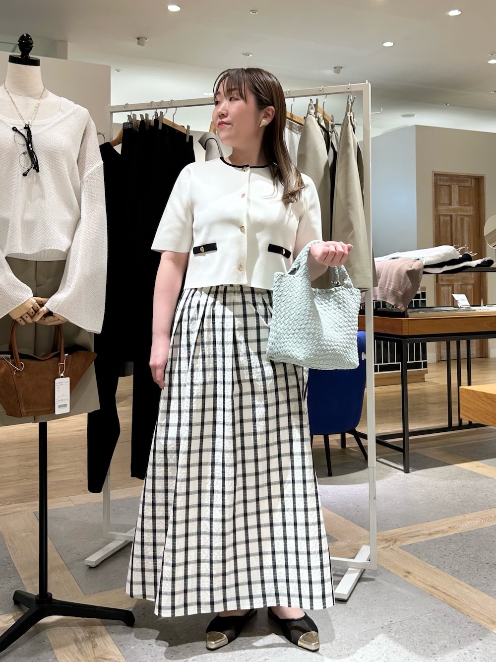 Hori.A(ノーリーズ&グッドマン京王聖蹟桜ヶ丘店)のノーカラージャケット「《セットアップ対応》《手洗い可能》ミラノリブ半袖ジャケット」を使ったコーディネート