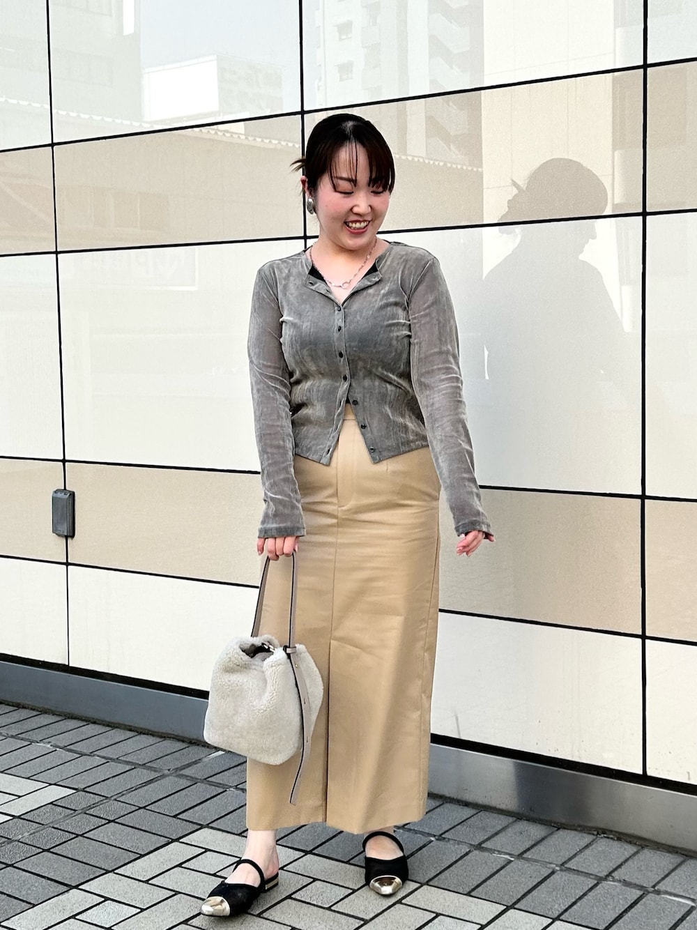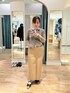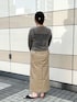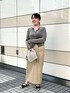 お気に入りのリアルバイコーデ フロッキーチュールCDはヘルシーな肌見せが叶う大人な1枚 ベロアのような柔らかな起毛感と軽い着心地でこの時期にジャストで着ていただけます 羽織としても、ボタンを閉めてプルオーバーにするのもオススメ◎ 程よいフィット感で身体のラインが綺麗に見えます ツヤ感のある素材でカジュアルになりすぎない撥水チノSK 腰回りはタック無しですっきり、縦長シルエットでスタイル良く見える形です ストレッチ感は弱めですが、深めの前スリットで足捌きはバッチリ◎ [着用サイズ] カーディガン:38 スカート:38