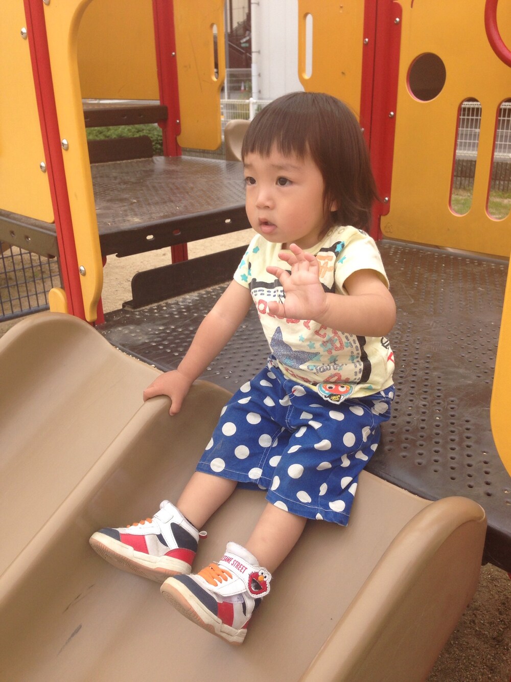 JAM Tシャツ しまむら ドットハーフパンツ H&M エルモスニーカー 一応白いスニーカー(笑)