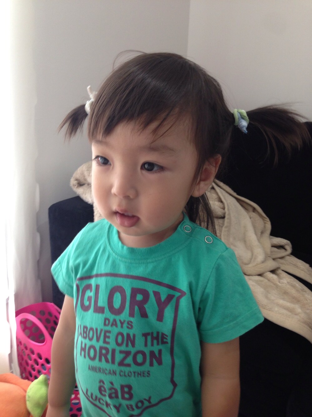 Tシャツ eaB ストライプハーフパンツ 息子にツインテール強要(笑) もんすごい嫌がってましたʕº̫͡ºʔ