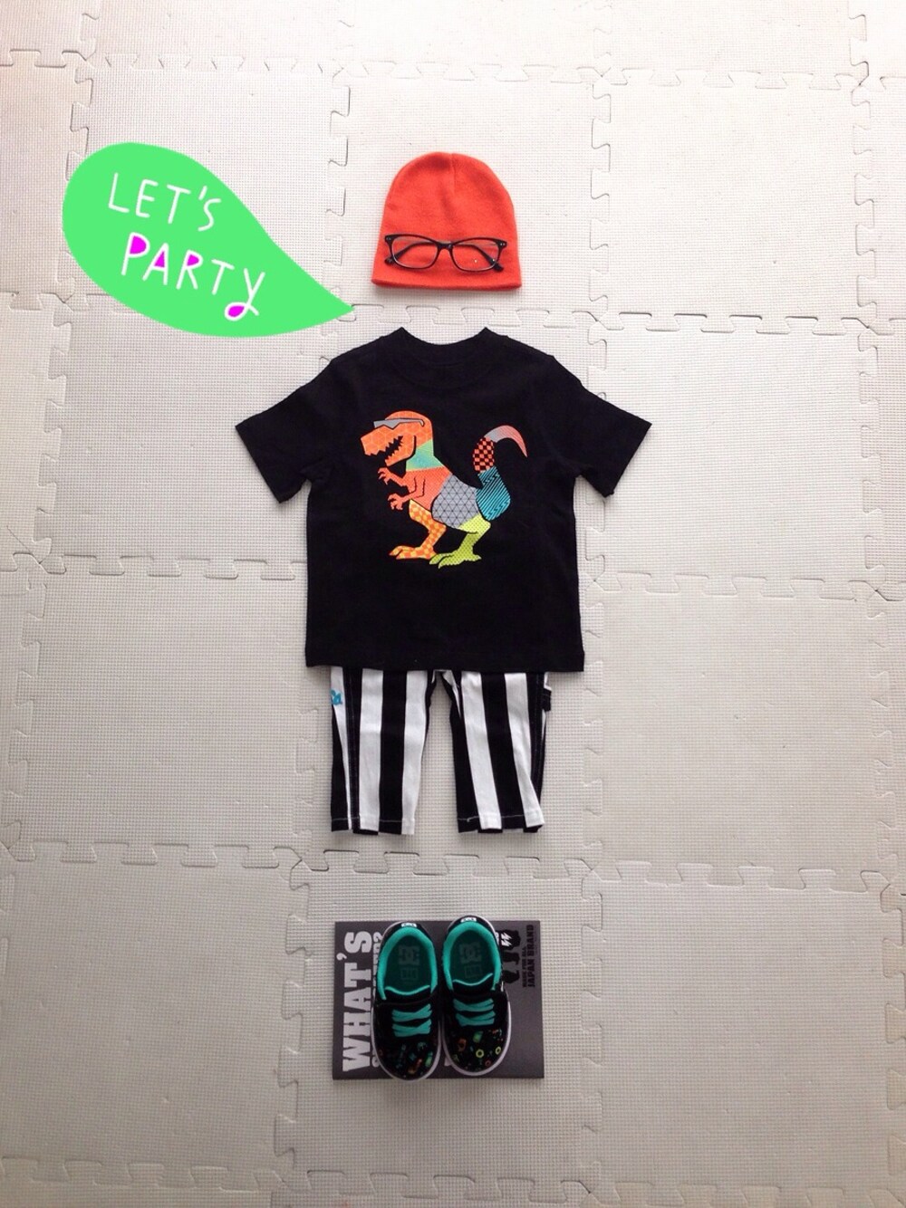 OLD NAVY Tシャツ JAM ストライプ クロップドパンツ ニット帽 メガネ DC スニーカー