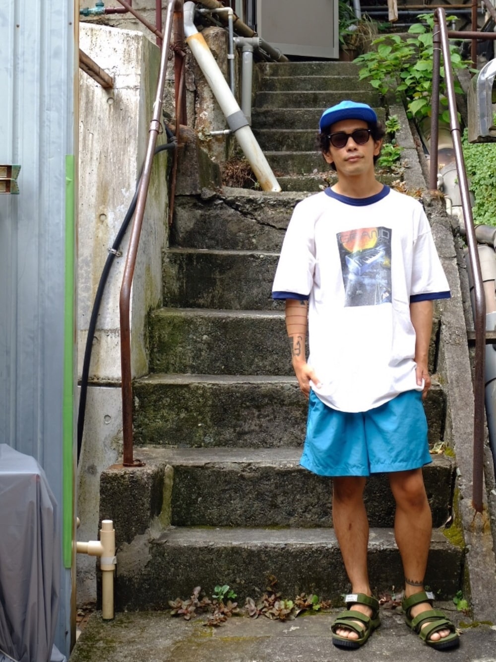 完全にアップし忘れ。 夏の終わりの一枚です。 GRAND ROYALトリムT 20年ぶりに実家から救出して 袖を通しました。