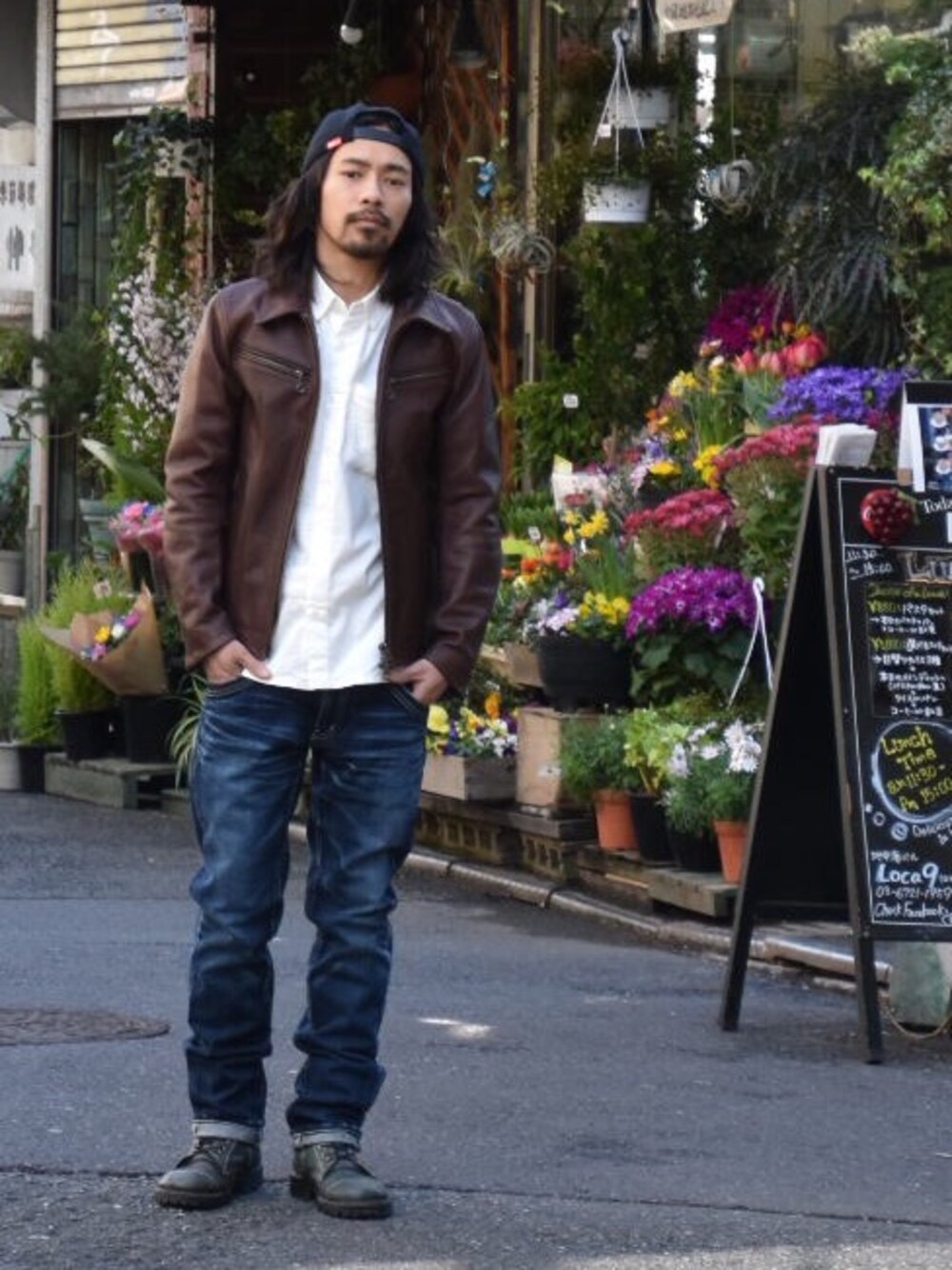 73.Yuma_Hatanoのライダースジャケット「TYPE V-2 LEATHER JKT」を使ったコーディネート