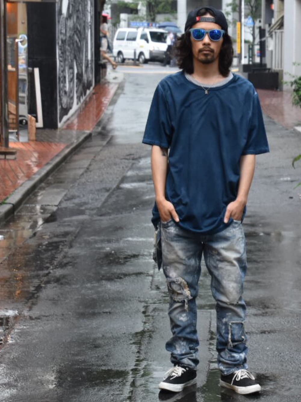 こんにちは。 雨やまないですね… 今日はVIZ STORE-TOKYOでも 取り扱いのあるアクセサリーブランド GARAが主催する合同展示会へ おじゃましました。 今回も個性的な世界観で 気になるアイテムばかりですので 秋冬も是非お楽しみに★ 先週の入荷から 大好評頂いています、 独特の染め加工が特徴的な カットソー。 人気のネイビーをオーバーサイズで 久しぶりのデニムと合わせ 夏らしくコーディネートしました。 展示会で手に入れた タイダイブランド「D.Y.E」さんの バンダナを巻いてアクセントに^ ^