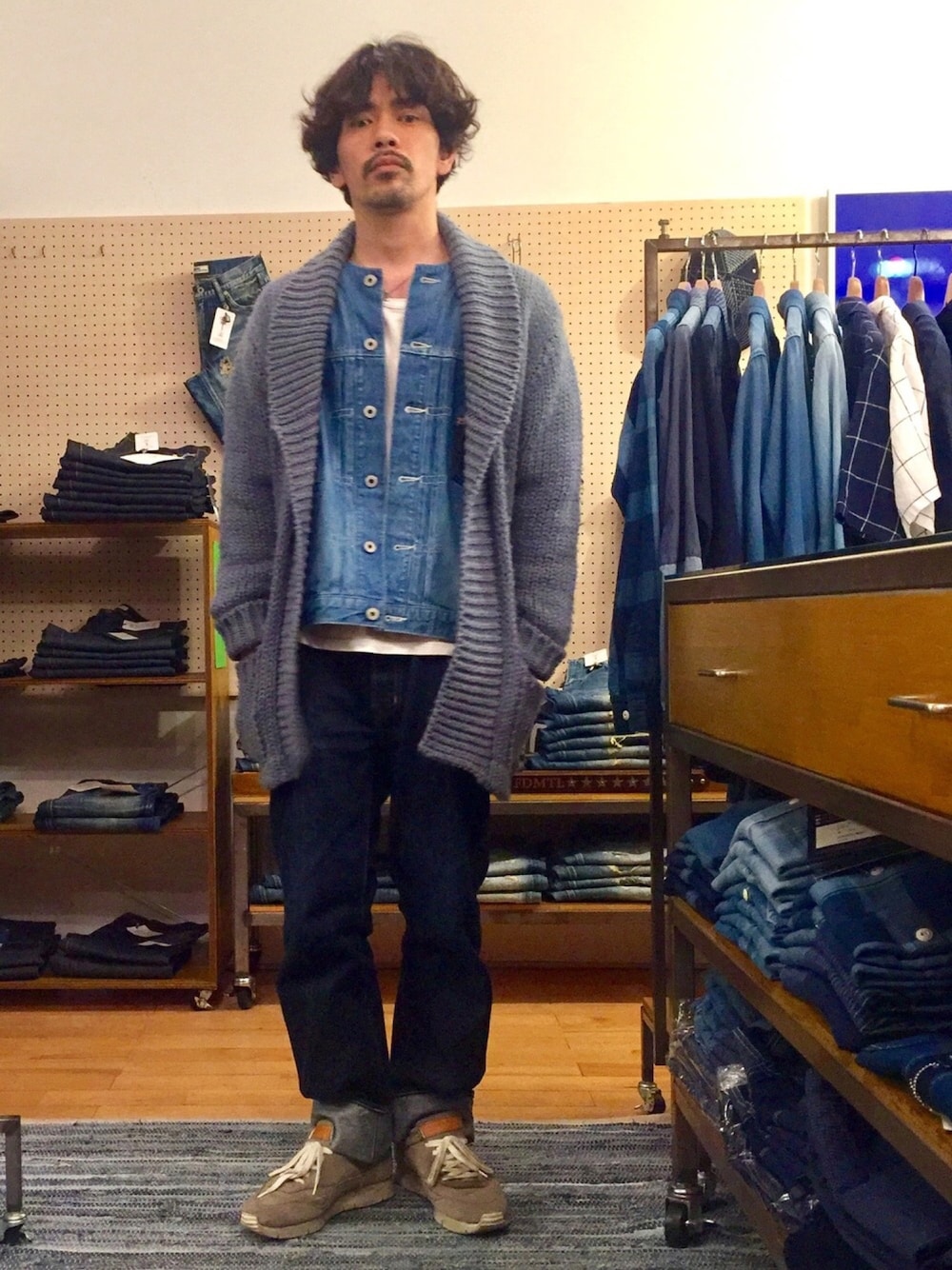 学大Endressで買ったニットガウン👍 デニムオンデニムはデフォルトです👖