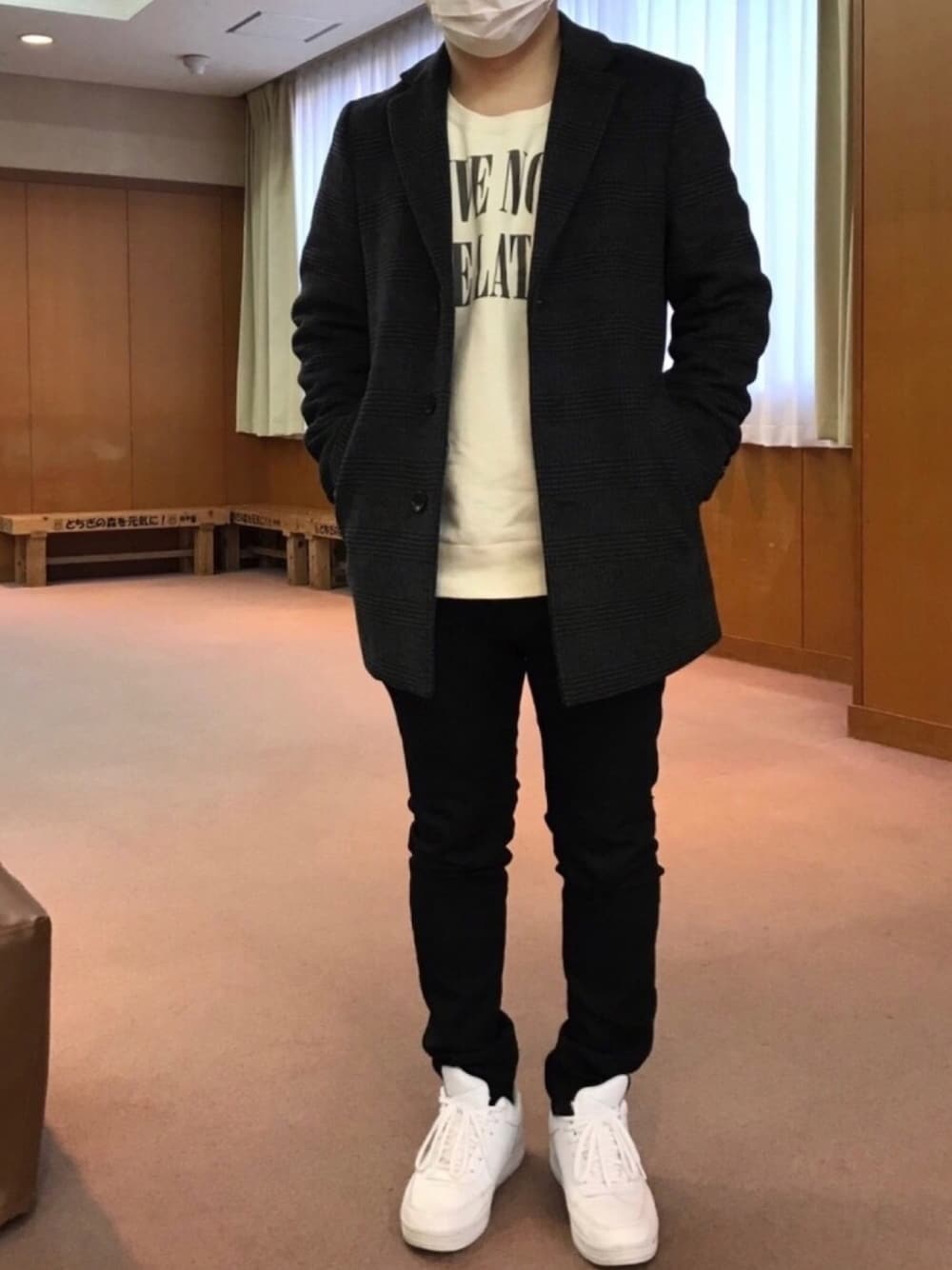 チェスターコートずっと着たかったんですが低身長なので諦めていました… が、ついに購入しました。 バランス悪くならないようチェスターコートはショート丈にしてパンツはスキニーを合わせてスッキリした感じになるようにしました。
