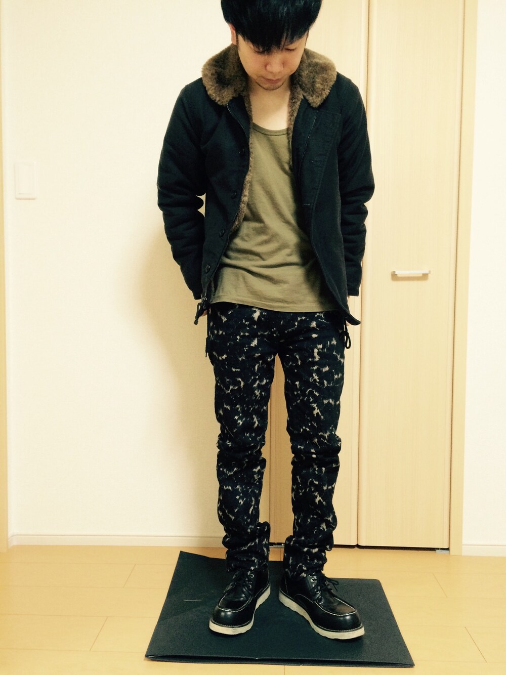 アウター: NAVY DEPARTMENT 米海軍ミリタリー N-1デッキジャケット 総裏ボアでとてもあたたかいです。