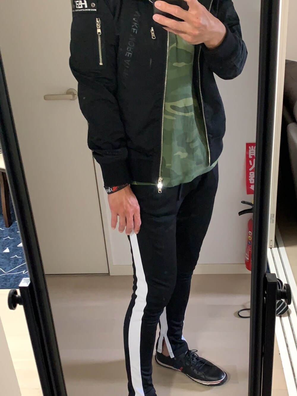 海の男のスウェットパンツ「NUMBER (N)INE DENIM(ナンバーナインデニム)サイドライントラックパンツ」を使ったコーディネート