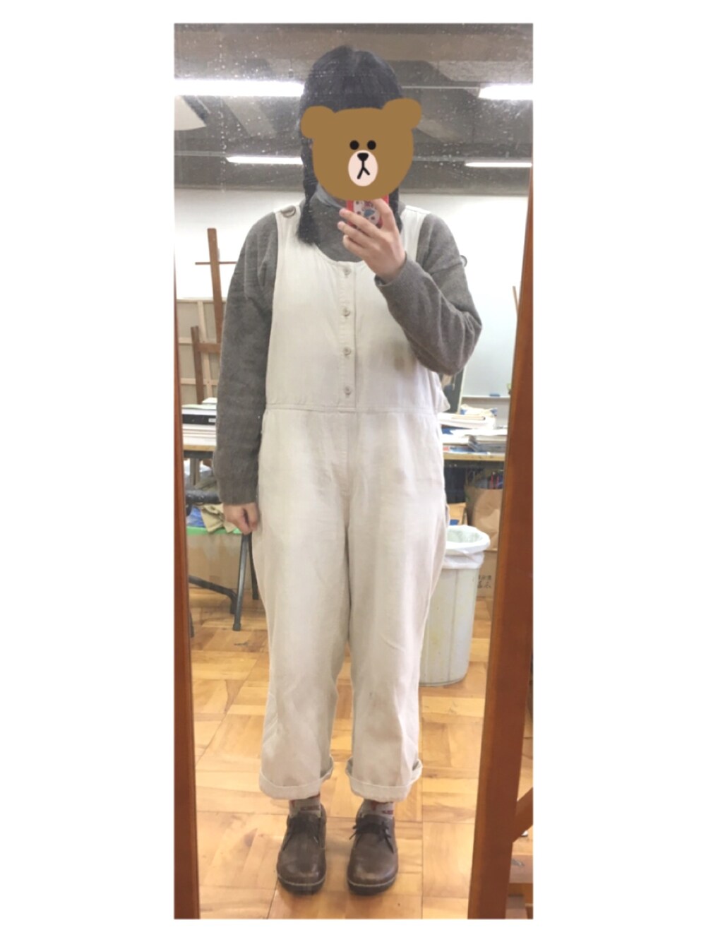 ブラウン×ホワイト コーディネート☕️ 鏡がちょっと汚い😭