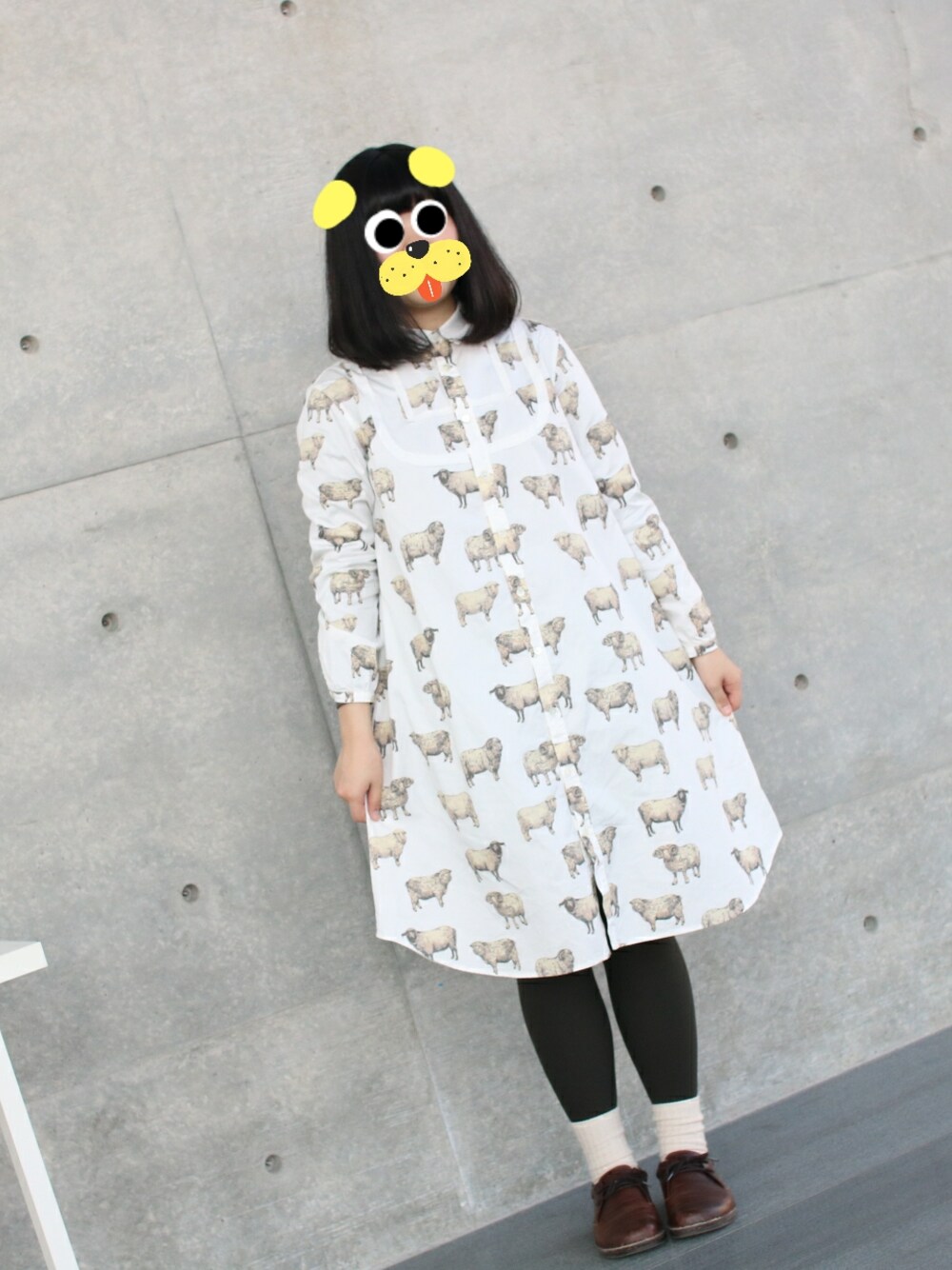 今日は暖かかったからひつじの群れアウター着た☺シャツワンピースは初めて。
