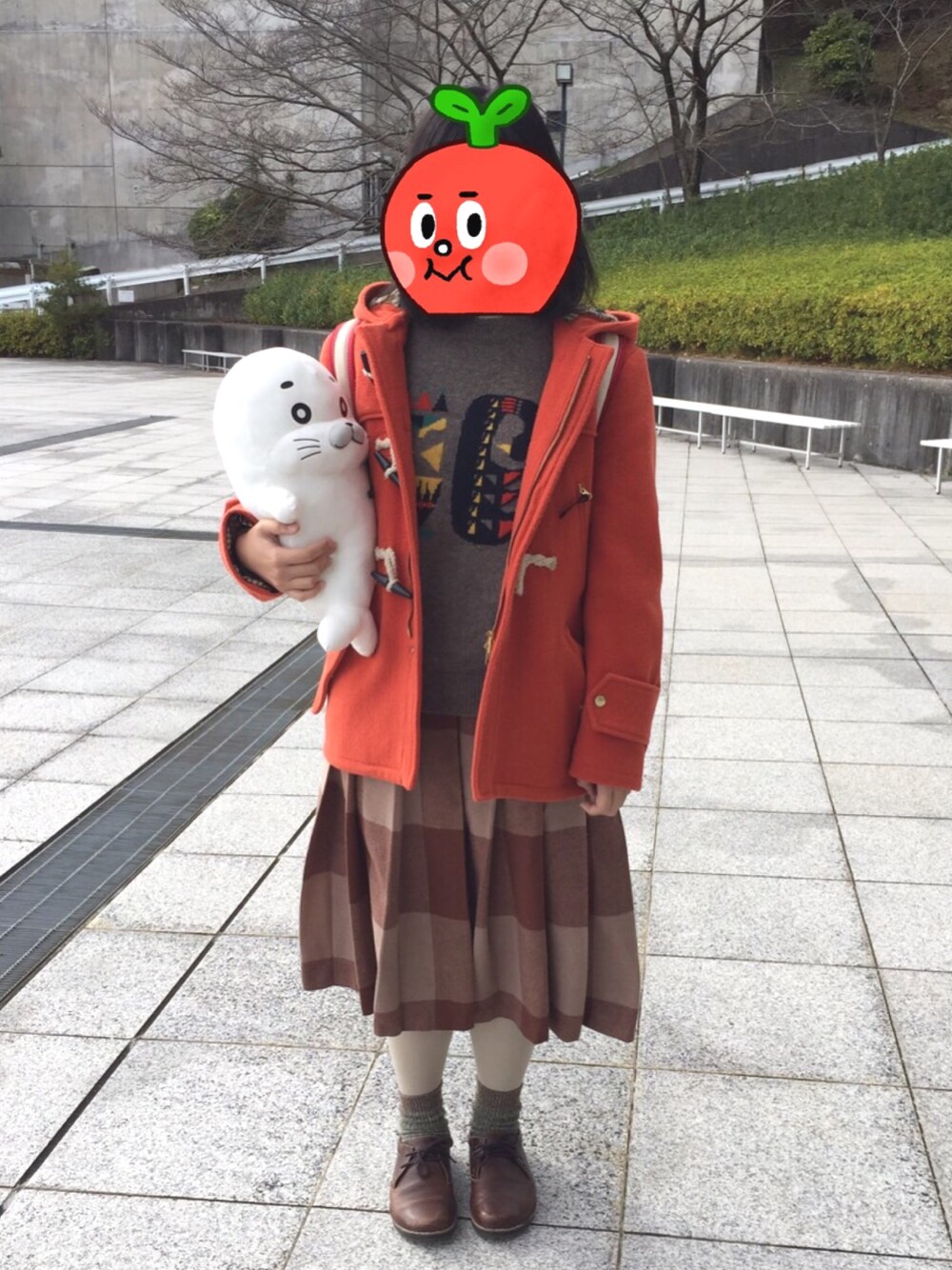 オレンジと茶色でまとめたコーディネート🍊🍩 こわきにゴマちゃん☺️