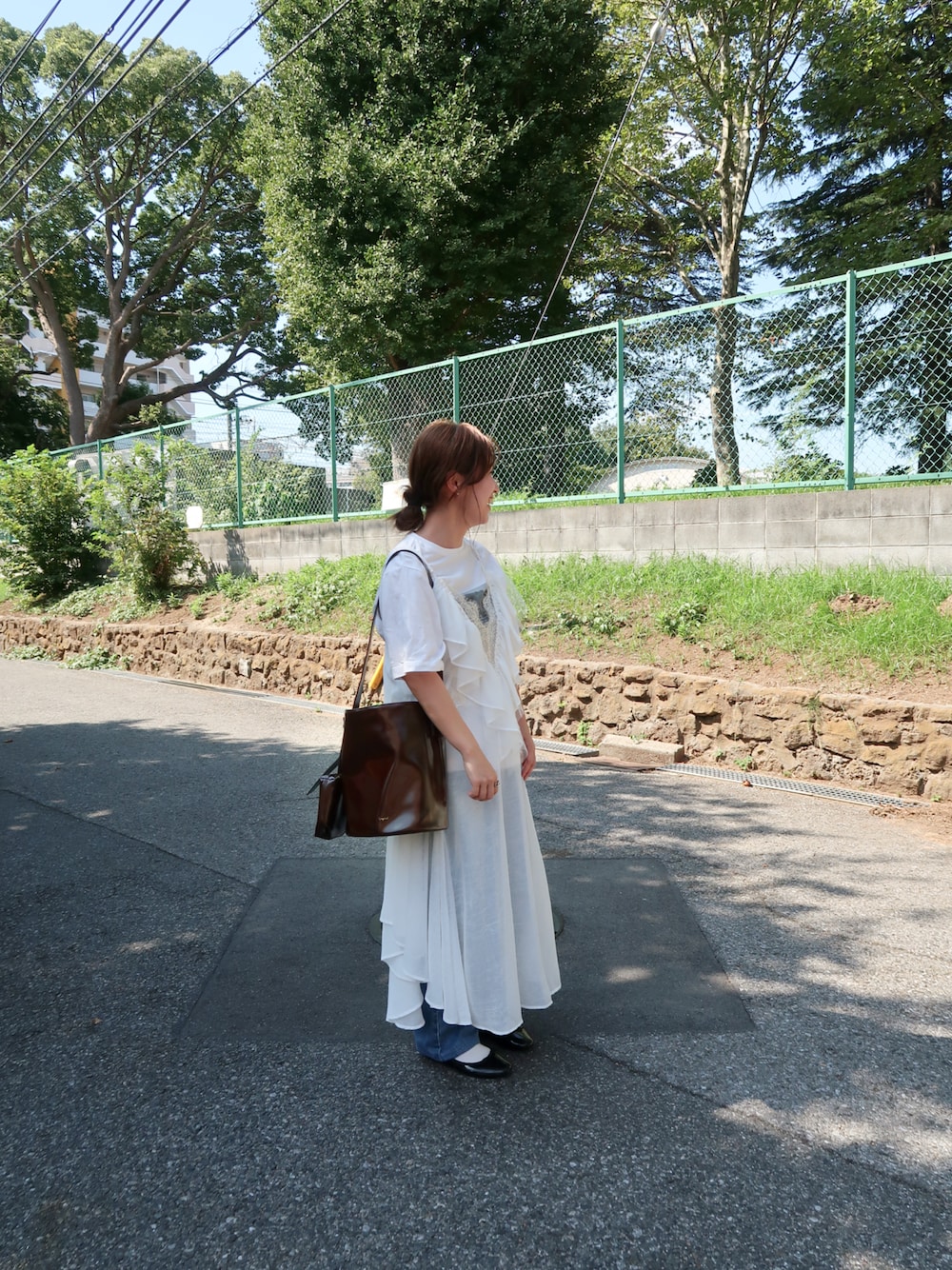 ajのショルダーバッグ「【Ungrid/アングリッド】 ポーチチャーム付 バックルベルトバケットバッグ/500mlペットボトル収納可能」を使ったコーディネート