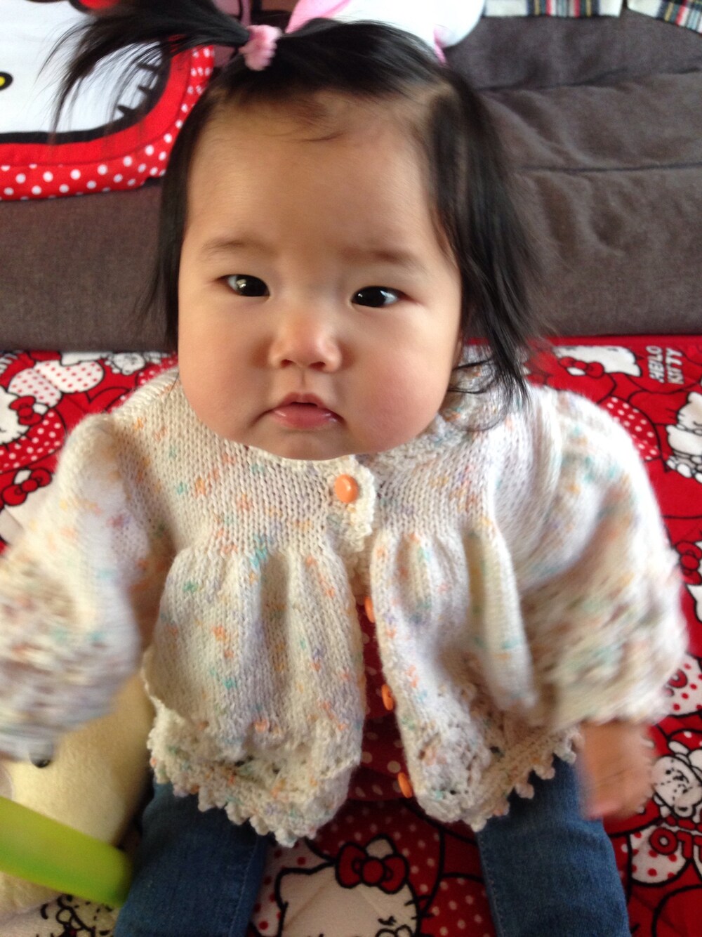 ばぁ〜ばコレクション🎀 今日はカーディガン真っ白じゃなくてちょこちょこ色が入ってます。 これめっちゃ可愛い❤️ ばぁ〜ばに感謝☆