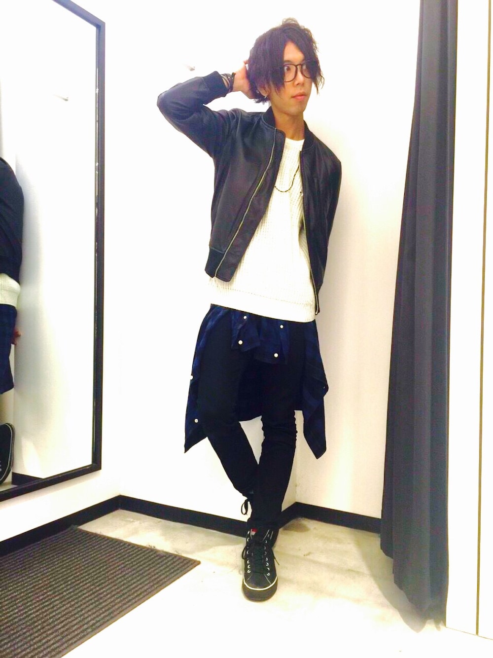 レザーのブルゾンに、白ニットという王道コーデです! でも、やっぱり一番しっくりきますね笑