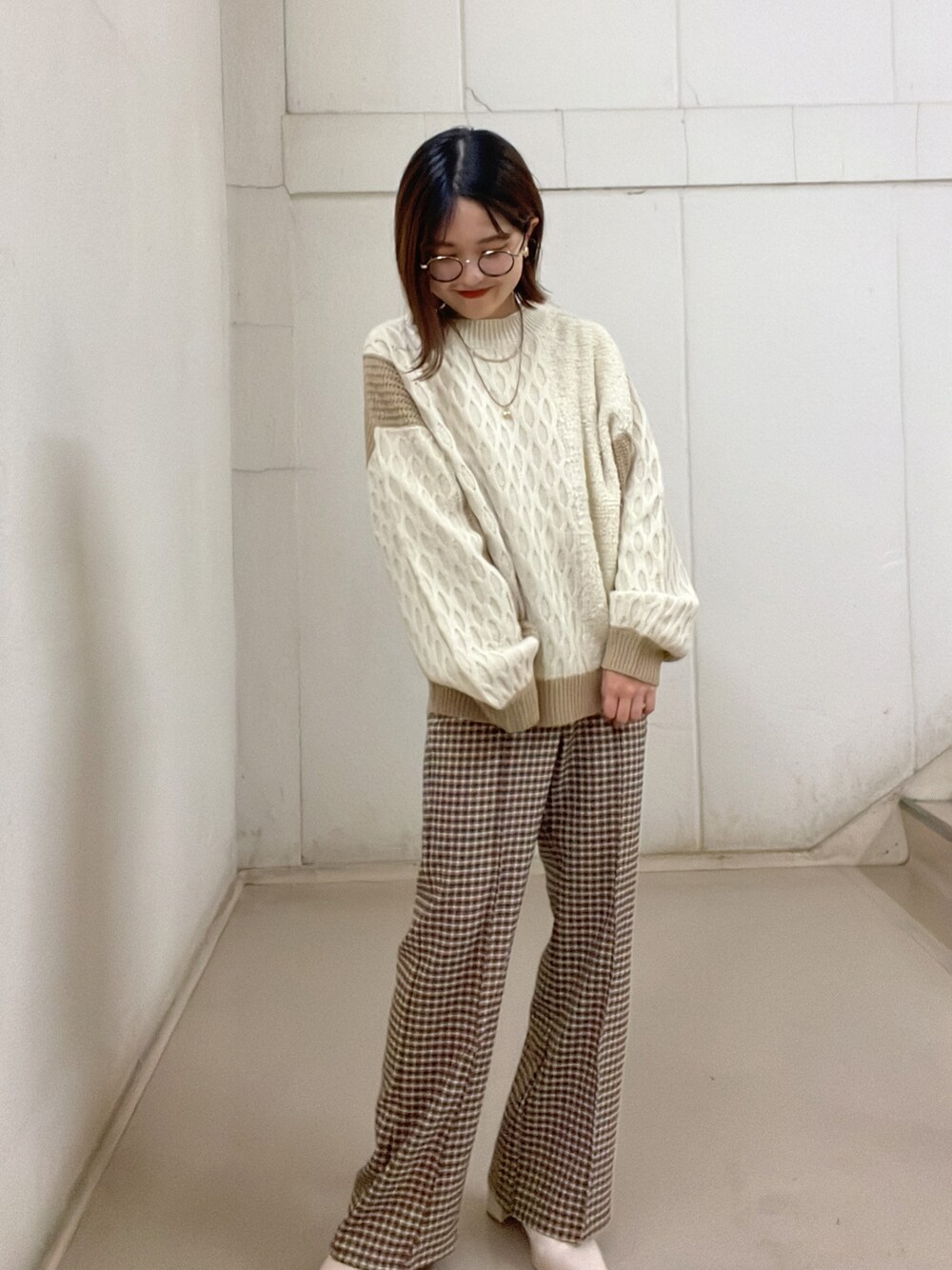 imaiのニット/セーター「パッチワークケーブルニット」を使ったコーディネート
