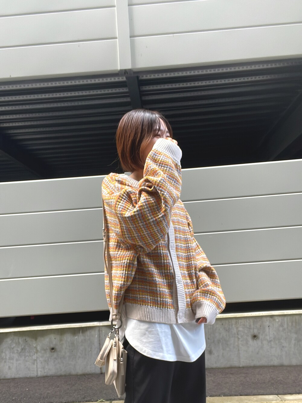 imaiのニット/セーター「ツイードライククルーネックカーディガン 2WAY」を使ったコーディネート