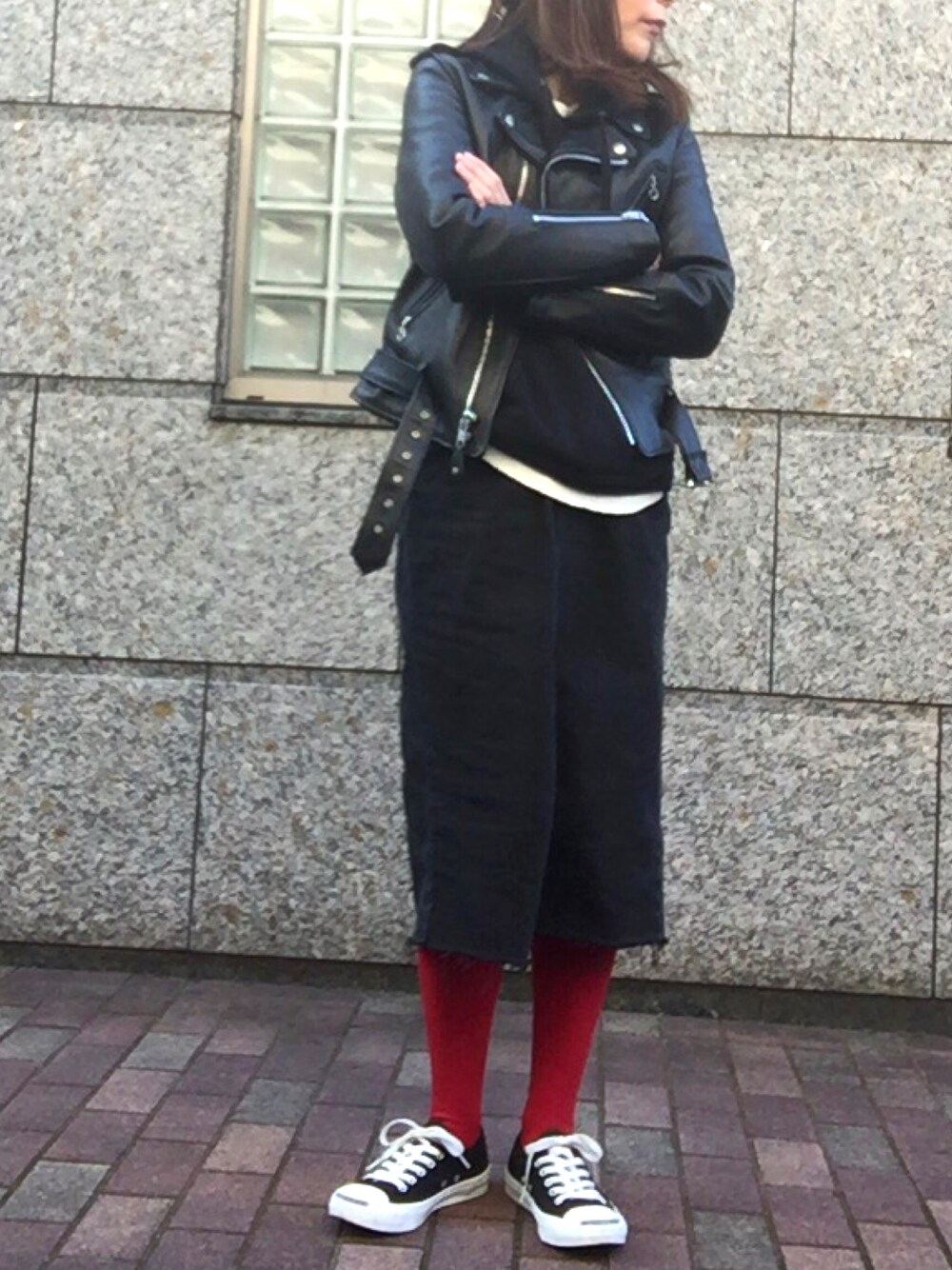 ライダース着るとついオールブラックしたくなる😅 今日はちょこっと赤プラス🙂