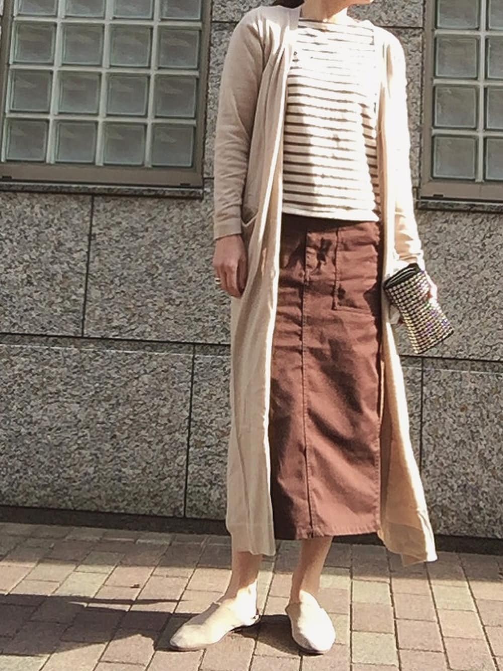 rkmmのカーディガン/ボレロ「ロング丈綿素材スリットカーデ」を使ったコーディネート