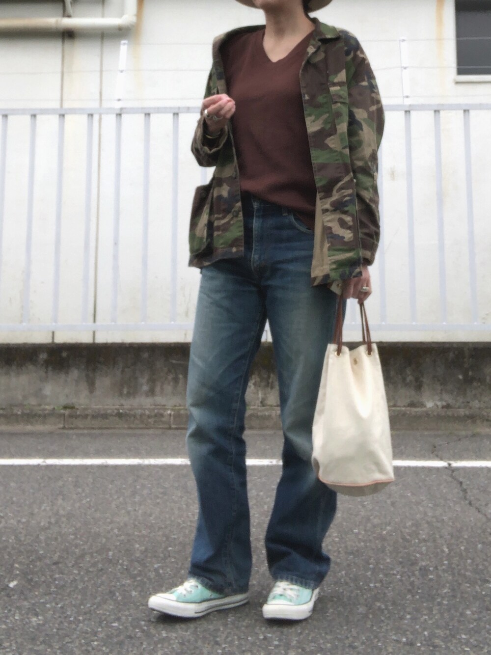 サーマルとアウター着てても寒かった😭 コンバースは脱色しました