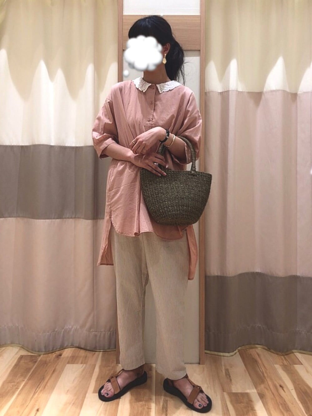 shin.のシャツ/ブラウス「レース衿前開きチュニック」を使ったコーディネート