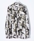 総柄オープンカラーシャツのコーディネートです。 シャツを活かすべく、下半身を黒で統一し、生地の質感、シルエットを合わせました。