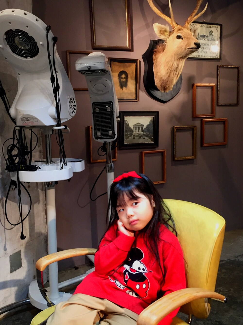 私の美容院に同伴。wearに載せる写真撮ってー。とポージングしてましたw 私に似て暑がりでほんと重ね着ができない。 ずっと話してましたので美容師さん、疲れさせたらごめんね🙏と申し訳なかったー 娘は自分もして欲しかったらしい✂️ ママの前髪カットしか経験してない娘。今度の七五三👘終わったら初美容院💇を体験させます💪