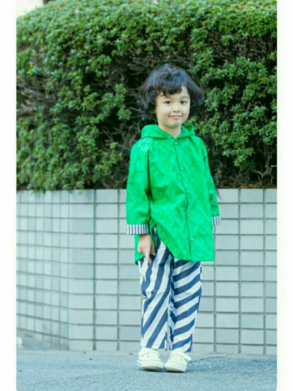 グリーン系のシャツ/ブラウスを着用したキッズの春コーディネートの1枚目の写真