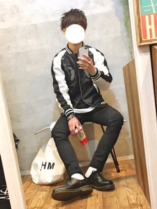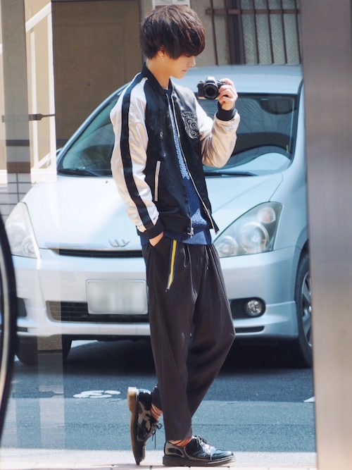 一目惚れしたスカジャンコーデmen's.verです👀 スカジャンは男らしさを上げてくれるアイテムなので いいですよね〜😎 少しヤンキーっぽい印象もありますが、 中にニットとか可愛いものを合わせると めちゃめちゃバランスがいいと思います😍 秋に向けてライダース編も見て下さい🐿🍂