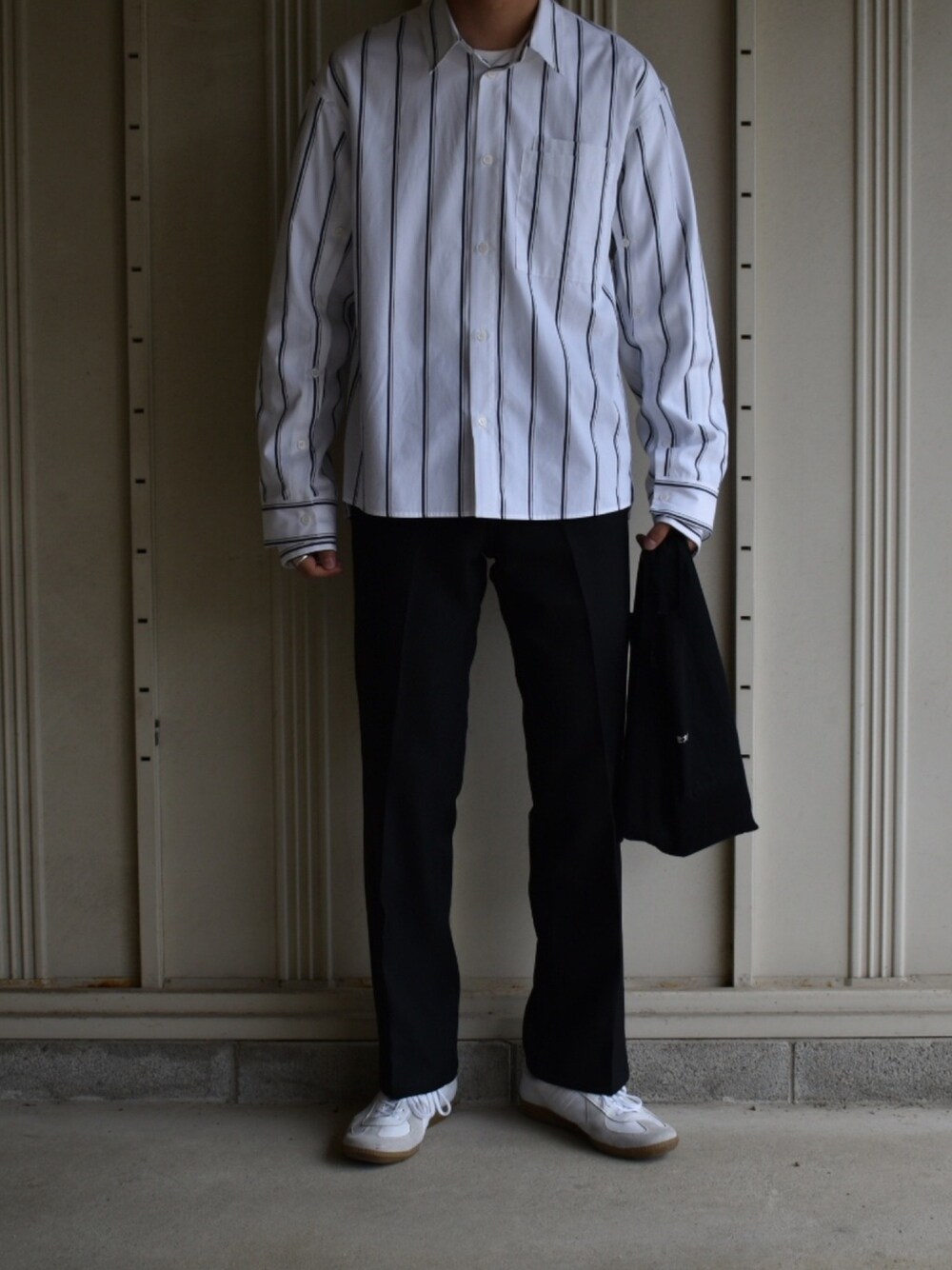 袖と胸ポケットがレイヤードされていて、シンプルですが遊び心のあるシャツです! あとショート丈のシャツなのでフルレングスのパンツとの相性が◎