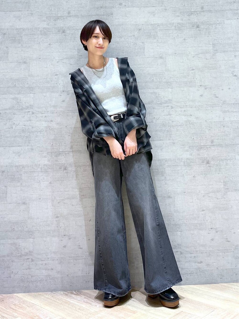 【シャツ】 ・丈が長すぎず、使いやすいシルエットのチェックシャツ。 ・微起毛なので、柔らかくて着心地抜群です☆ 【デニム】 ・164cmでLサイズ着用。 ・シルエットめちゃくちゃ綺麗で、腰位置高く見えます!