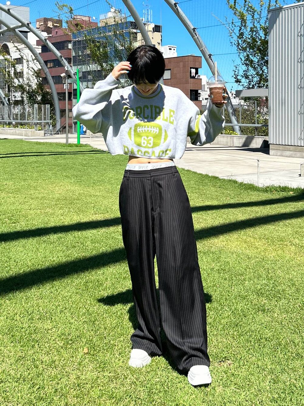 なっつ(PAGEBOY 本部)のスラックス「【TGC teen 着用アイテム/UNISEX】ロゴレイヤードスラックス」を使ったコーディネート