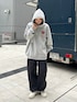 なっつ(PAGEBOY 本部)のスウェット「【MULGA THE LIFE】裏起毛/コラボプリントルーズプルオーバーパーカー」を使ったコーディネート
