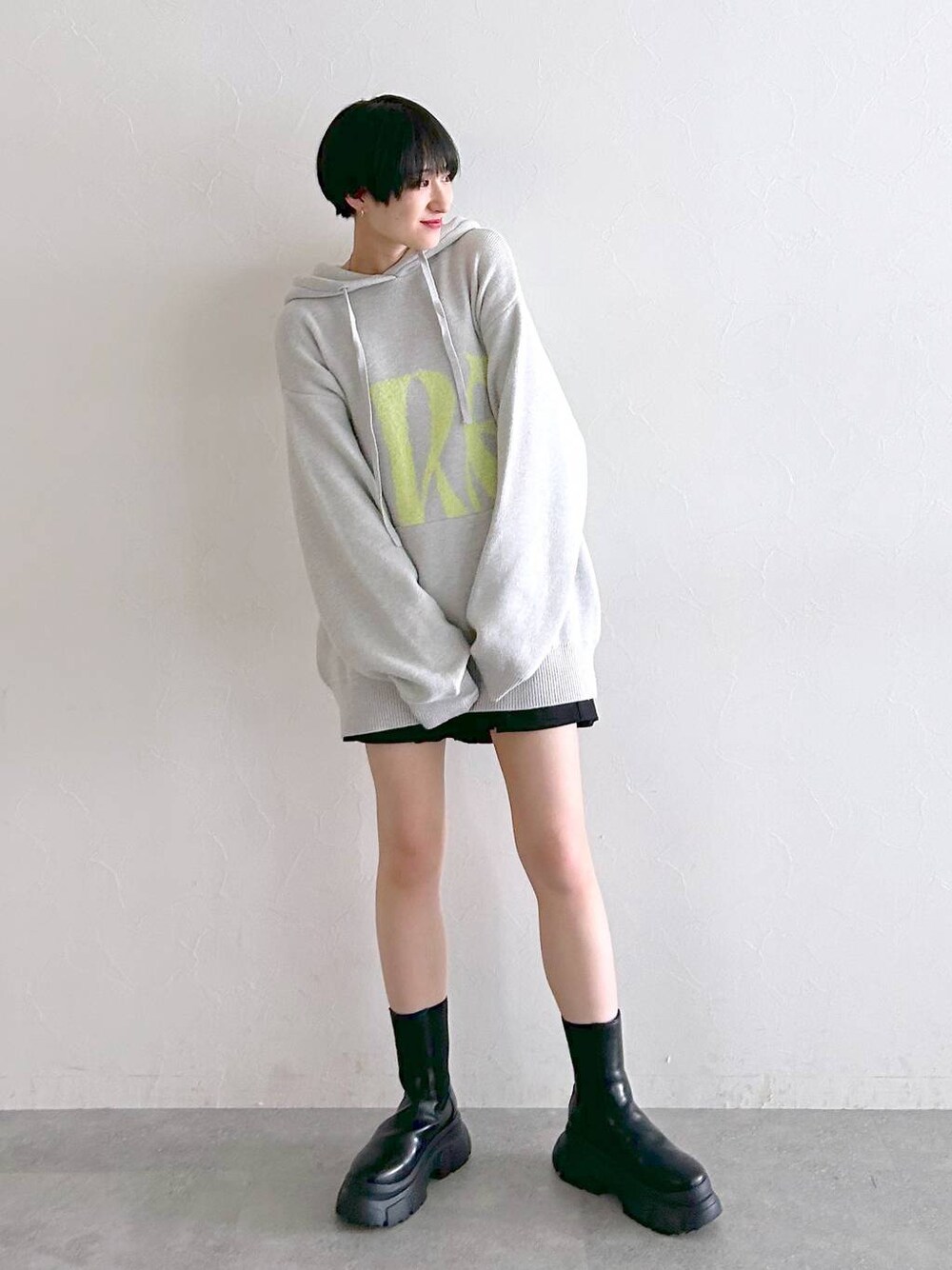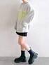 【トップス】 ・フードついてるニットかわいい! ・グレーのニットでも、文字がワンポイントになってくれます! ・生地も柔らかいので着心地抜群です。 【パンツ】 ・前から見るとプリーツスカートに見えるショートパンツ。 ・短め丈ですがパンツなので安心! ・生地は冬にも使いやすそうな、少し厚手生地になってます。