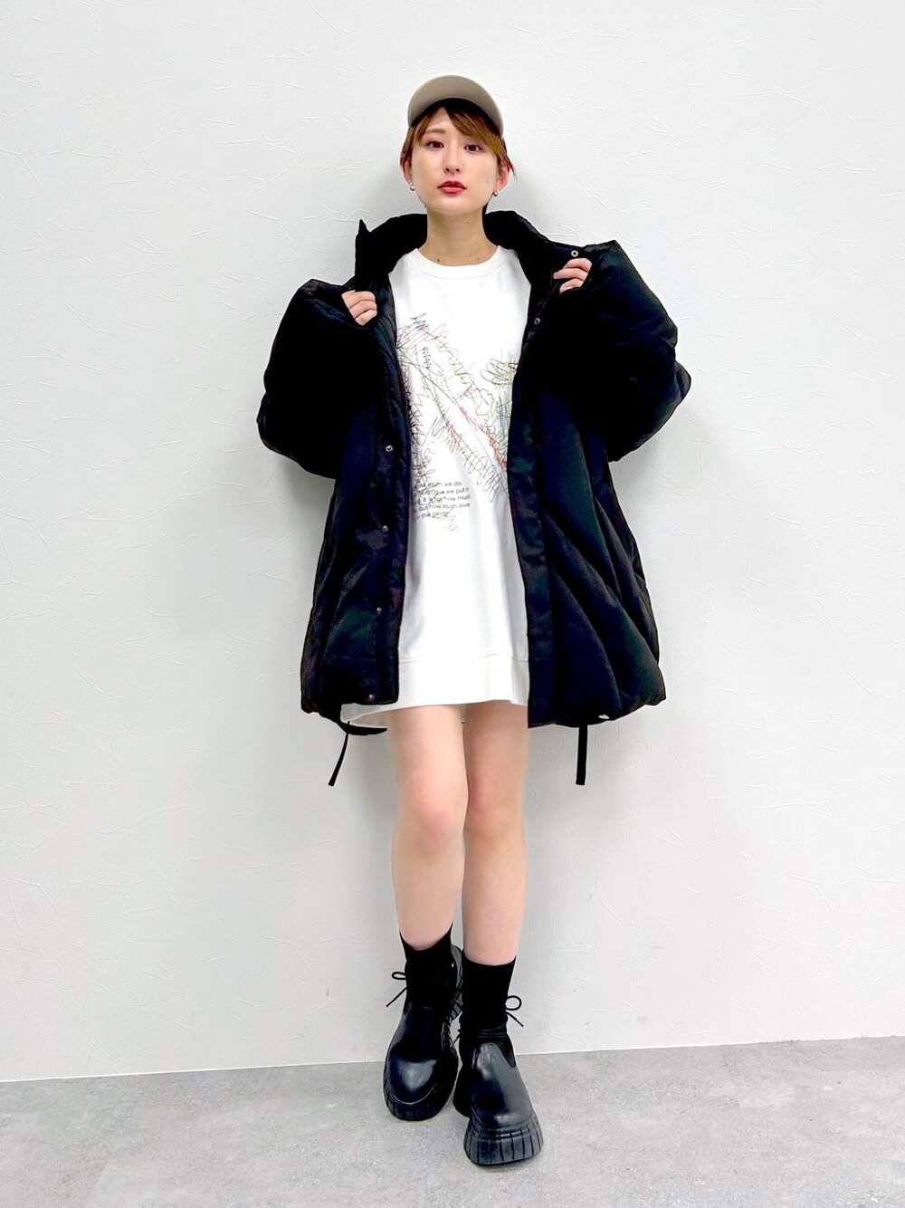 【アウター】 ・アシメデザインになっている中綿のアウター! ・着心地は結構軽くて着やすいです。 ・袖の取り外しができるデザイン! ・お尻まですっぽり隠れるし、首もしっかり覆われるので、真冬も暖かく着用していただけるアイテムです。 【シューズ】 ・リアルバイアイテムです! ・普段24.5〜25cmを履いていますが、Lサイズでちょうど良いです! ・そこもふかっとしているので、長く歩いても疲れにくいからおすすめ! 【ボトム】 ・リアルバイアイテムです! ・他のページボーイのミニボトムより短めの丈感! ・ワンピっぽく着たいトップスの中に着るのが個人的にはおすすめ! 【スウェット】 ・ワンピで着るのにぴったりなサイズ感! ・素材もしっかりしつつ、厚手すぎないので、春までバッチリ使えます。 ・前の刺繍デザインが可愛くて、アウター合わせもおすすめ!