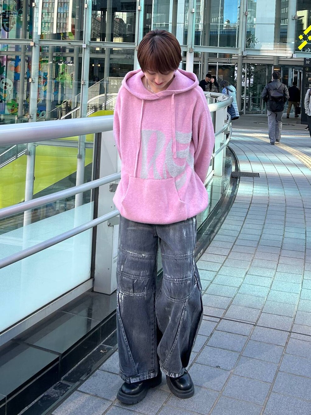 【トップス】 ・フードついてるニットかわいい! ・ピンクの色味も、綺麗な色で⚪︎。文字がグレーなので、甘い印象になりすぎません。 ・生地も柔らかいので着心地抜群です。 【ボトム】 ・人気の箔プリントデニム! ・164cmでGサイズ着用。 ・他のAnuiのデニムよりも少し短めに感じたので、私くらいの身長の方なら、Rサイズでも厚底じゃないシューズでも合わせられそうです⚪︎。 ・低身長さんにはGサイズがおすすめ!