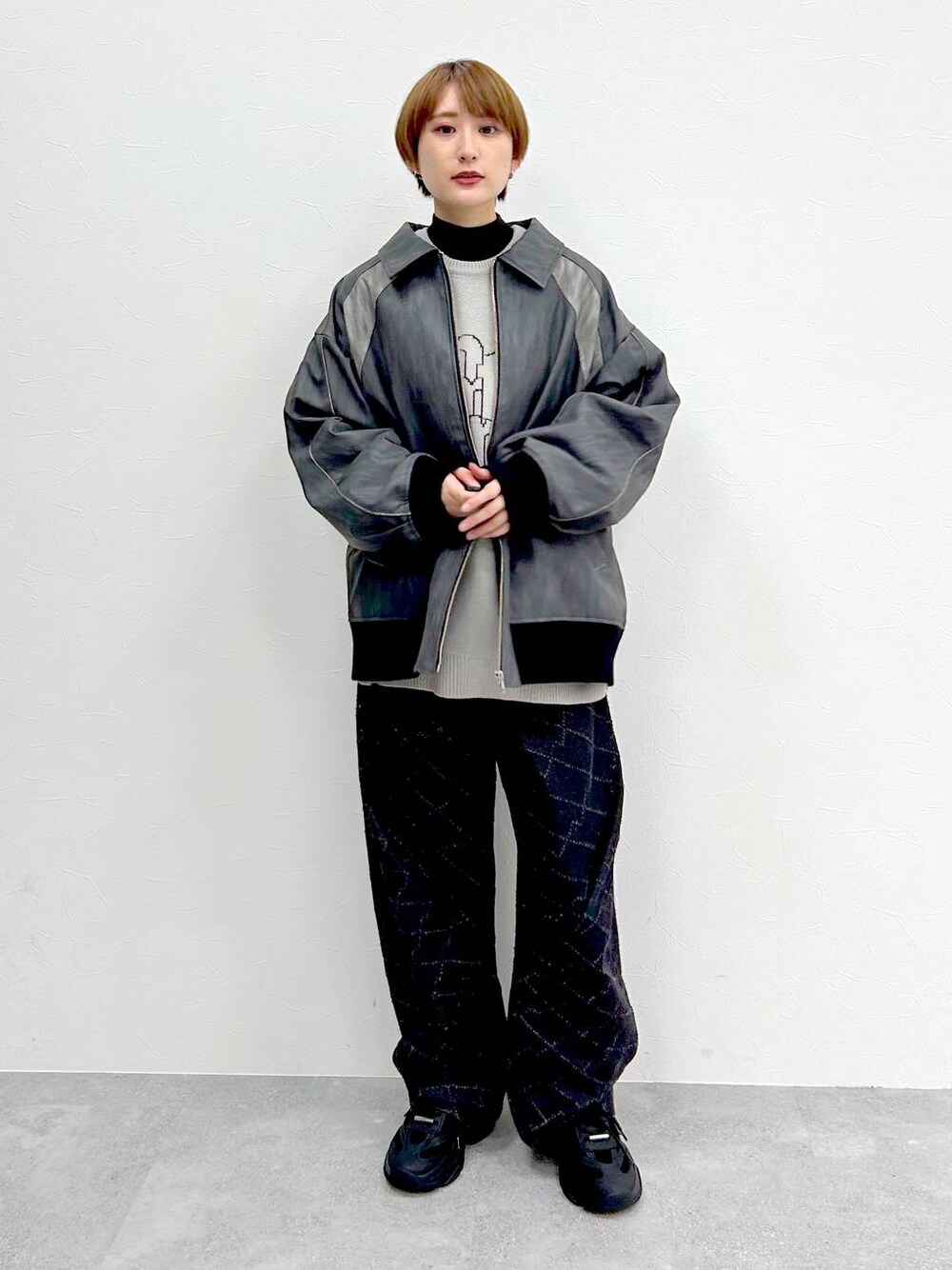 なっつ(PAGEBOY 本部)のブルゾン「【UNISEX/選べる着丈】ヴィンテージフェイクレザーブルゾン」を使ったコーディネート