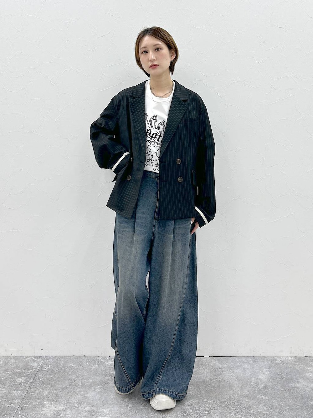 【トップス】 ・164cmでM2サイズ着用。 ・ゆったり着られて、肘もがっつり隠れるサイズ感です。 ・フロントのうさぎのデザインは刺繍になっています!!立体的で可愛いです! 【ジャケット】 ・あやせりんてさんコラボアイテム! ・いつものAnuiのジャケットより、少しコンパクトなサイズ感。 ・肩は落ちているので、ルーズに着られる! ・裏地はついていないので、夏にもさらっと羽織りやすいアイテムになっています。 ・袖のワンポイントが可愛いアイテムです! 【パンツ】 ・164cmでR2サイズ着用。 ・ライトオンスのデニムなので、柔らかく薄手で、夏にも履きやすいアイテムになっています! ・がっつりワイドなシルエットですが、素材の落ち感とサイドのライン、形も綺麗なので、だばだばしすぎず着られるのがポイントです! ※サンプルで撮影しているので、一部製品と仕様が異なる箇所があります。 ①ジャケットの袖のラインは左手のみになります。 詳細は商品ページをご覧ください!