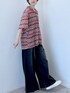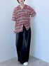【トップス】 ・ピンク系のカラーと幾何学なボーダーが一枚で映える開襟シャツ! ・素材柔らかく、着心地○です。 ・デニム合わせがオススメアイテム! ・透け感あって涼しいですが、袖が肘まであるのが嬉しいポイント! 【パンツ】 ・164cmでR2サイズ着用。 ・ライトオンスのデニムなので、柔らかく薄手で、夏にも履きやすいアイテムになっています! ・がっつりワイドなシルエットですが、素材の落ち感とサイドのライン、形も綺麗なので、だばだばしすぎず着られるのがポイントです!