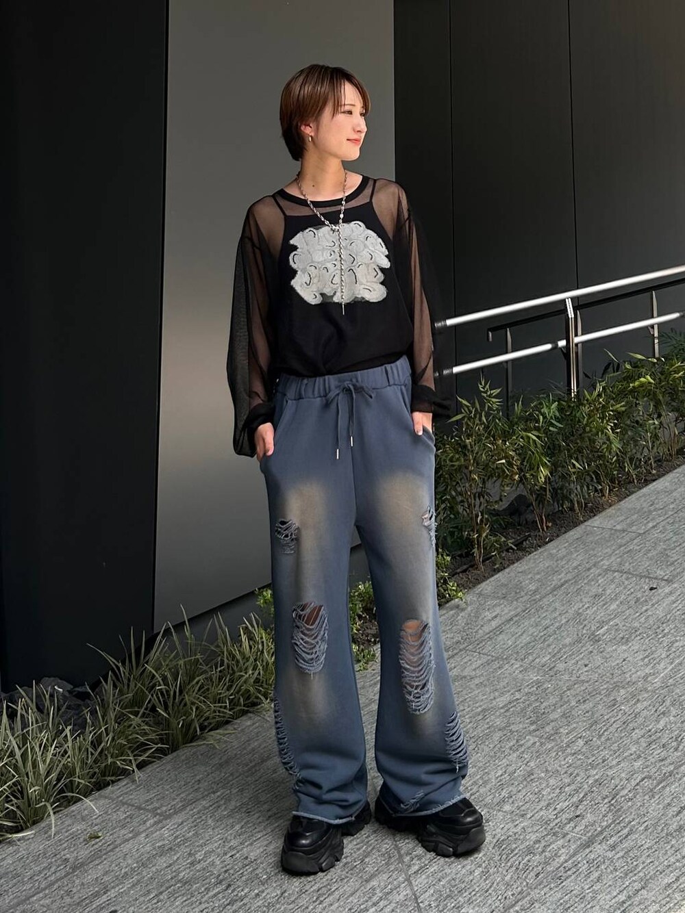 【トップス】 ・シアー感が可愛いトップス! ・少し秋めいたアイテムが欲しい…でも暑い… というときにピッタリです!! ・合わせるインナーは、キャミだと少し肌見せできて◎ ・ノースリのインナーで、肌見せ控える合わせ方もおすすめです! 【パンツ】 ・164cmでG2サイズ着用。 ・ダメージのデザインと、生地の色味が可愛い!! ・楽だけどおしゃれできちゃうアイテムです!