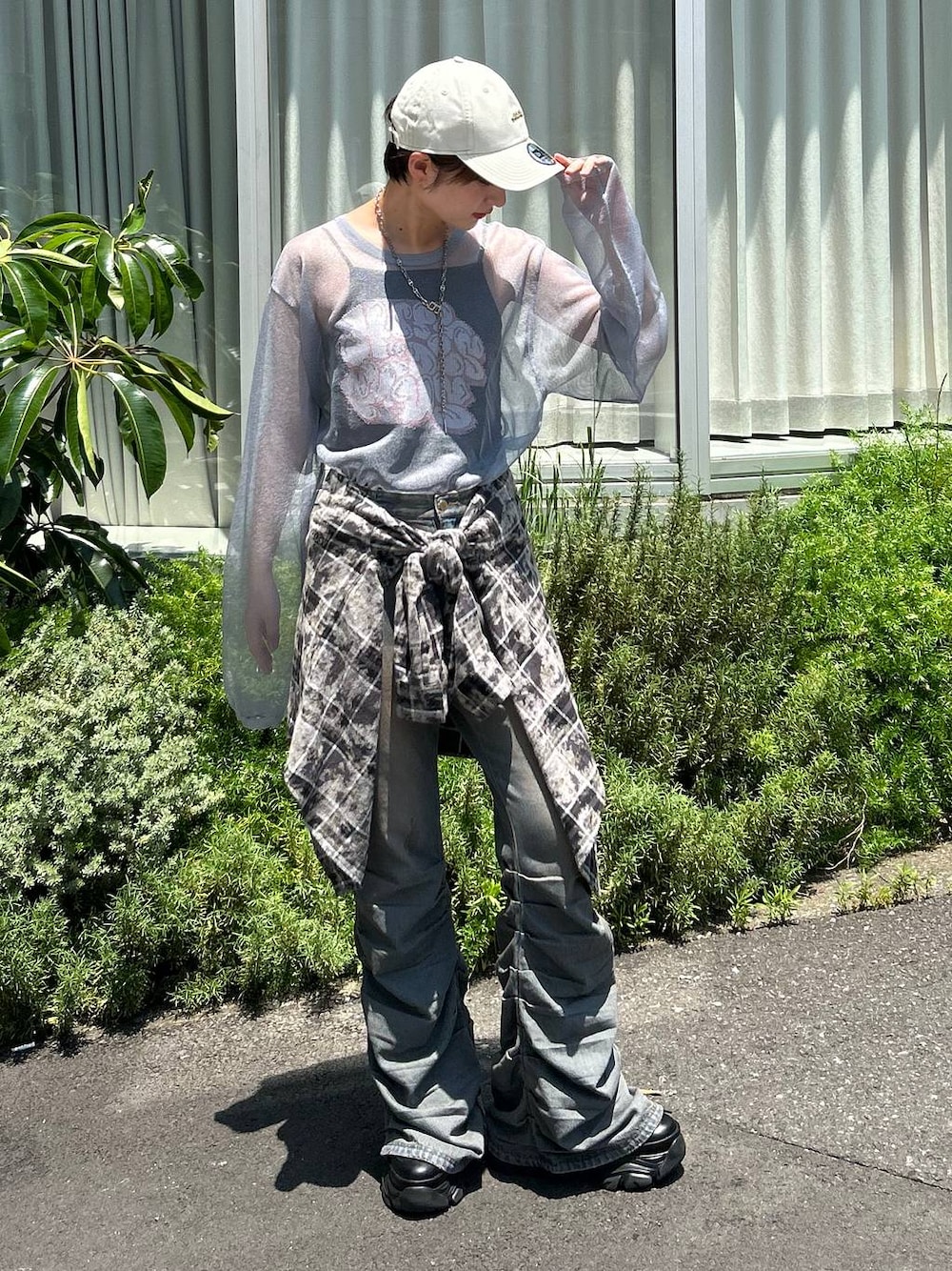 【トップス】 ・シアー感が可愛いトップス! ・少し秋めいたアイテムが欲しい…でも暑い… というときにピッタリです!! ・合わせるインナーは、キャミだと少し肌見せできて◎ ・ノースリやロンTをインナーにして、肌見せ控える合わせ方もおすすめです! 【パンツ】 ※リアルバイのR2サイズを着用していますが、予約分はR1サイズになって、画像のものより少し丈が短くなっています。 ・164cmでR2サイズを着用。 ・厚底で合わせると、めちゃくちゃ足が長く見えます! ・ストレッチはありませんが、柔らかい素材なので、着心地○です。