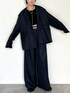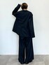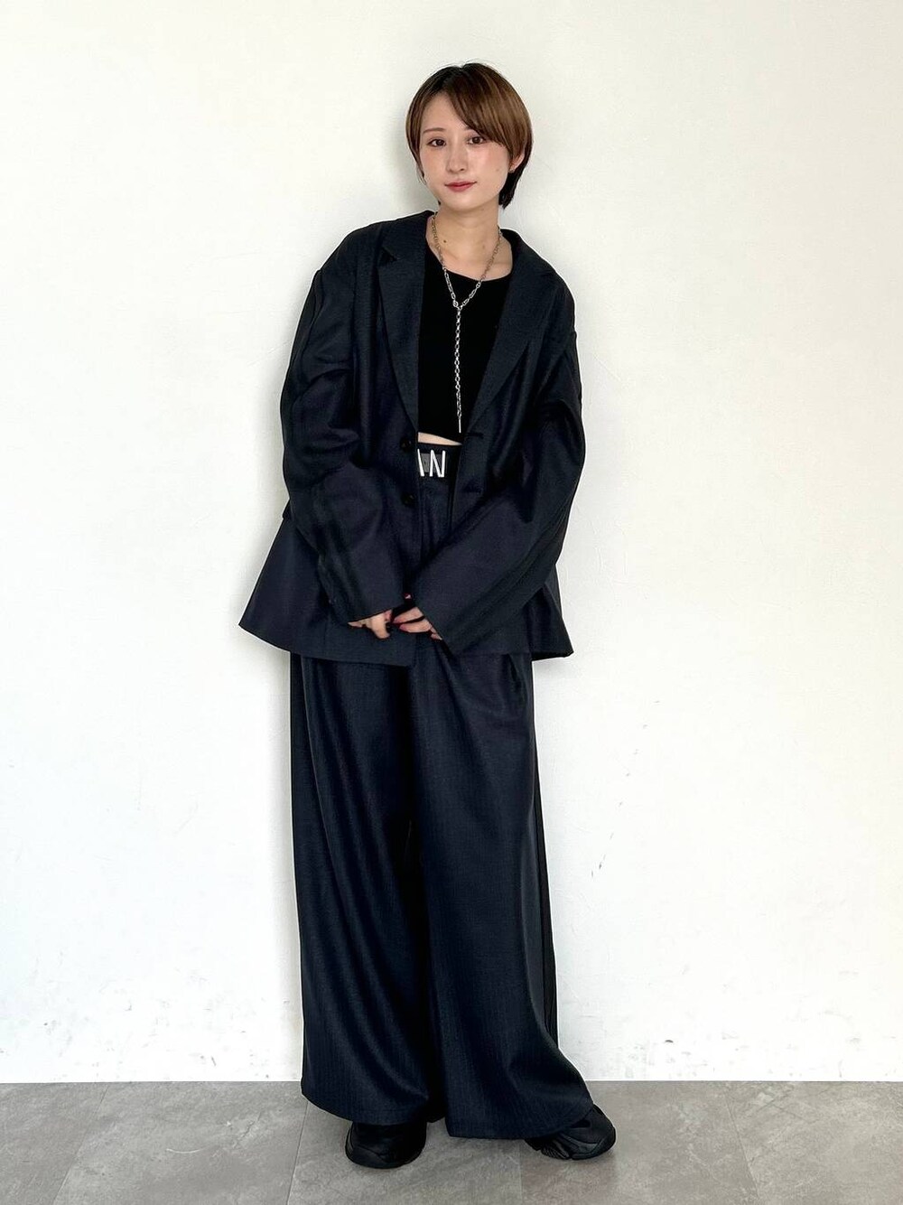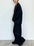 ブラックでモードなコーデ。 164cmでボトムはG2サイズを着用。 ぺたんこシューズならちょうど良いかなという丈ですが、 個人的なおすすめは、R2サイズを選んでルーズに履くシルエットが綺麗!!