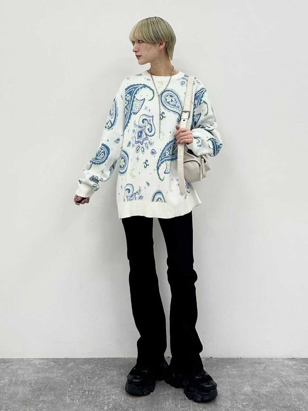 【トップス】 ・珍しいデザインがポイントになるニット ・ジャガード織りなので、生地しっかりしています! ・ふわふわしない素材なので、冬だけでなく秋冬にも使える万能ニット! 【パンツ】 ・164cmでMサイズ着用。 ・画像の通り、めちゃくちゃ細見えします! ・ストレッチがしっかりきいているので、履き心地も◎です!
