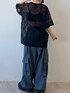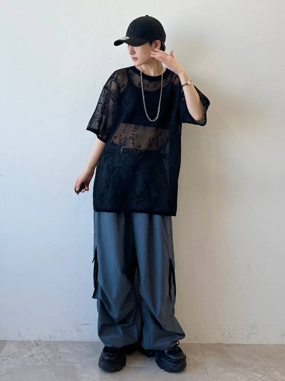 【トップス】 ・透け感が春夏らしいアイテムがアニュイから登場! ・レースも柔らかめの素材、首元はTシャツのようなリブになっているので、ちくちくを感じにくいのも嬉しいポイント✨ ・今回は中に短め丈のキャミを合わせているので夏らしいコーデですが、半袖Tシャツやノースリーブを合わせると春にも使いやすいアイテムです! 【パンツ】 ・164cmでR2サイズ着用。程よいルーズ感で履ける、ちょうど良いサイズです○ ・裾が絞れるので、私の身長だと、どのサイズも履けました!G2サイズだと絞らずにスニーカー合わせもできるサイズ、 R2サイズで絞らないと厚底合わせたい丈 M2サイズだと裾絞るのはマストで、他に無いルーズ感のあるシルエットになっています。 ・スーツ系の素材で、カジュアルになりすぎず、ちょっと綺麗にも使えるのがポイント!