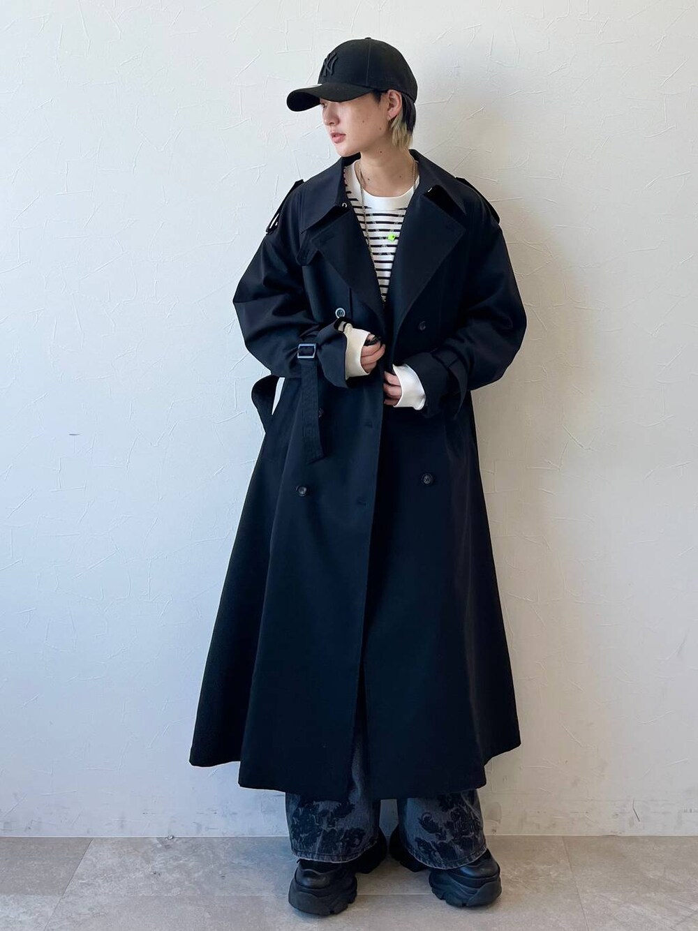 トレンチコートは腕周りゆったりめで、ルーズトップスも中に着られます!