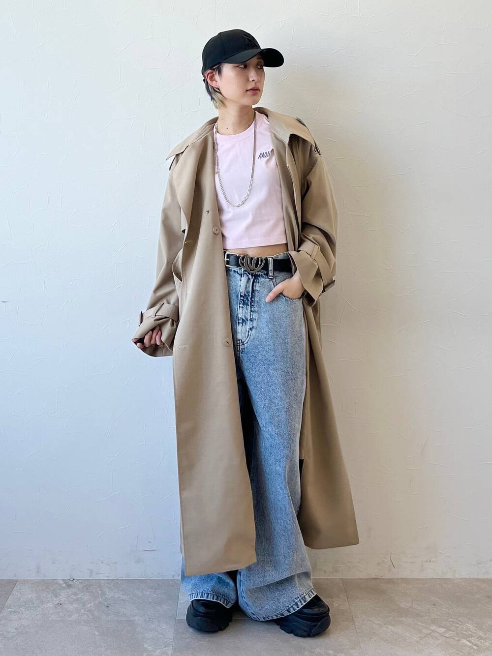 春に1番活躍するトレンチコート、着用しました! ボタンを全部閉めるとステンカラー、スタンドネックにもなる優れものです✨
